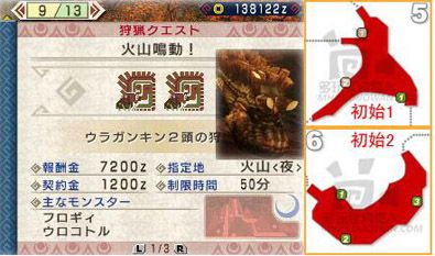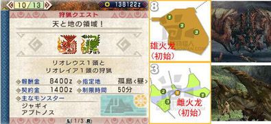 | 村★★★★★★ | 14. 大型连续狩猎 | 目标:雄火龙x1 炎戈龙x1(连续) | ||