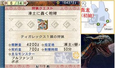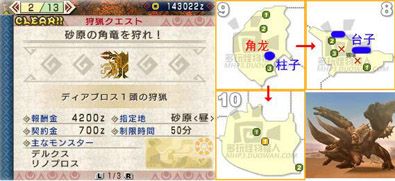 | 土砂龙初始于3区,角龙初始于8区。选择冰属性武器较好。 | ||||