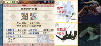 | 村★★★★★★ | 13. 大型连续狩猎 | 目标:土砂龙x1 角龙x1(连续) | ||