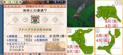 | 清理20只飞甲虫是件很讨厌的差事,有兴趣的话可以玩些辅助道具,比如毒雾玉之类的。飞甲虫出没于3个区,分两批刷新。首先清完2区,再清9区10区,当提示还剩10只时后批飞甲虫将可刷新。建议路线:②⑨10⑨10 | ||||