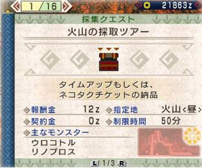 | 村★★★★ | 2. 狩猎雌火龙 | 目标:雌火龙x1 | ||