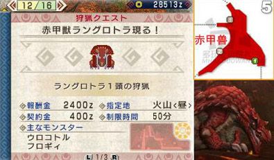 | 村★★★★ | 13. 狩猎赤甲兽 | 目标:赤甲兽x1 | ||