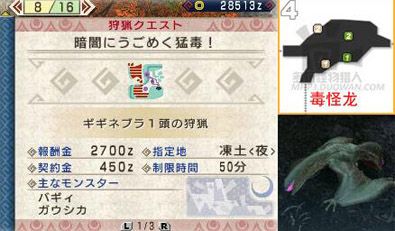| 毒怪龙 | 弱属性:火>龙 | 弱点:头(怒后为尾) | 可破:头 腹 尾 | 引发异常:毒 |