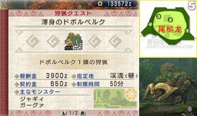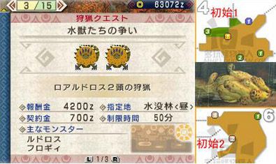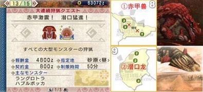 | 村★★★★★ | 15. 大型连续狩猎 | 目标:赤甲兽x1 潜口龙x1(连续) | ||