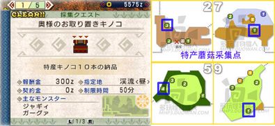 | 特产蘑菇的采集点共有以上4个,采够数量交到营地红箱子即可过关。 |