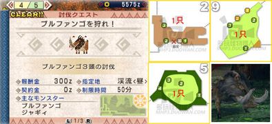 | 目标怪是3只野猪,分别出现在3个区里,建议讨伐顺序:②⑤⑨ |
